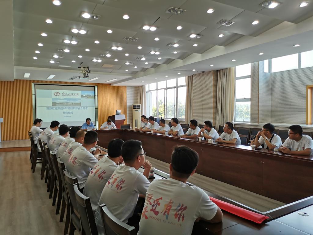 9月5日下午,威廉希尔集控062班的20余名校友,身着印有“拾年相聚”文字,带有校徽的白T恤,回到了心心念念的母校。学院梁绍华院长、陈培杰副书记及办公室负责人在至行苑·工程实践中心9-312会议室热情接待了校友们。