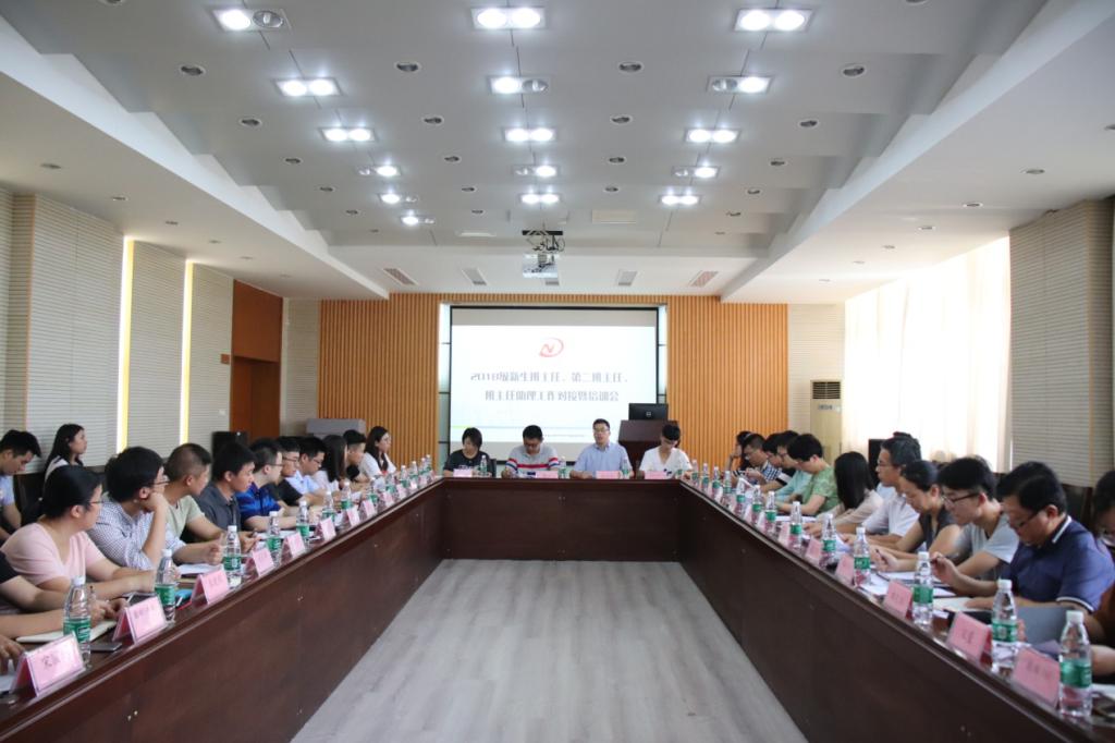 9月5日下午,威廉希尔2018级新生班主任、第二班主任、班主任助理工作对接暨培训会在学院三楼会议室举行。学院党政领导班子全体成员,2018级新生班主任、第二班主任以及班主任助理共计40余人参加了会议,校党委副书记、纪委书记刘志远出席会议,会议由分管学生工作副书记陈培杰主持。