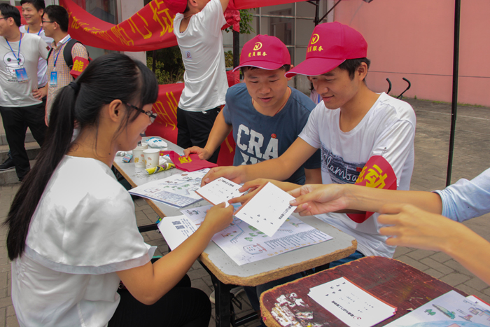 学生党员热心为学生及家长解答问题