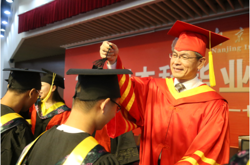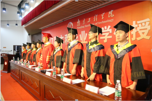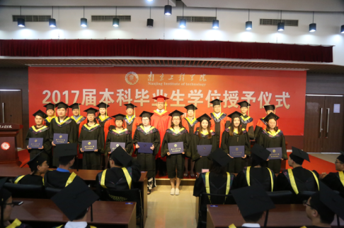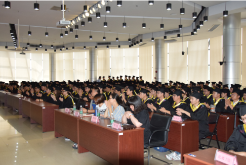 在热烈的掌声中,导师们为13位优秀毕业生颁发荣誉证书,为一批批身穿黄色垂带学士服的毕业生拨穗,并和他们合影留念。最后,全体师生齐唱校歌,学位授予仪式在全场师生热情洋溢的掌声和依依惜别的气氛中圆满结束。