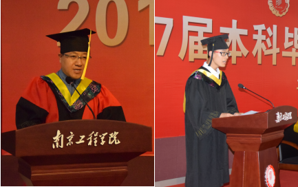 教师代表薛锐老师,结合毕业生们熟悉的专业术语,回顾了与大家相处四年的点滴,在轻松的氛围中表达了母校对毕业生们的期待和祝愿。学生代表能动131班的黄洲同学则道出毕业生们的心声,在这离别之际,发现自己与母校已血脉相连,表示要将依依不舍的眷恋化作志向,在各自的工作岗位、高校平台继续发光发热,以此回报母校的培育之恩。