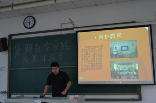汇报会上,各暑期社会团队以PPT结合现场演讲的方式,通过丰富的图片、详实的数据汇报了他们的社会实践成果。“心愿支教”、“桑梓情•雏鹰梦”、“蓝天支教筑梦白乌”等支教团队利用校地合作共建平台,奔赴江苏沛县、四川凉山州白乌镇等地为农村留守儿童、城市外来务工人员子女开设暑期爱心公益讲堂,为孩子们打造“七彩假期”。“江风海韵伴我行”、“寻碧水、共环保”等环保团队则在南通启东市、淮安盱眙县、泰州兴化市等地进行了水资源的调查,并呼吁大家“珍惜每一滴水,节约和保护水资源,就是保护我们的家园”。汇报会最后,学院党委副书记王薇薇肯定了各个实践团队在实践地区所取得的实践成果及社会反响,同时也对今后开展此项工作提出新的要求和展望,希望明年的暑期社会实践活动更有张力,更富生命力,成为校园文化特色品牌活动的亮点。