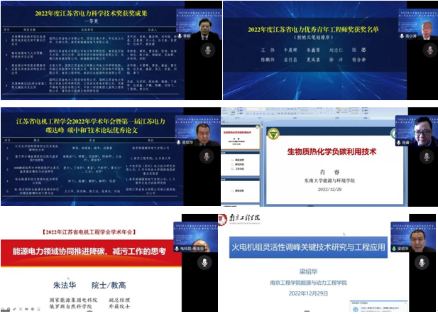 会议宣读了《2022年度江苏省电机工程学会科学技术奖的通报》、《2022年度江苏省电机工程学会优秀科技工作者奖和优秀青年工程师奖的通报》和《江苏省电机工程学会2022年学术年会暨第一届江苏电力“碳达峰 碳中和”技术论坛优秀论文的通知》。东南大学能源与环境学院院长肖睿教授、国家能源集团科学技术研究院有限公司副总经理朱法华教高、学校威廉希尔院长梁绍华教授分别作《生物质热化学负碳技术》、《能源电力领域协同推进降碳减污工作的思考》、《火电机组灵活性调峰关键技术研究及应用》主旨报告。